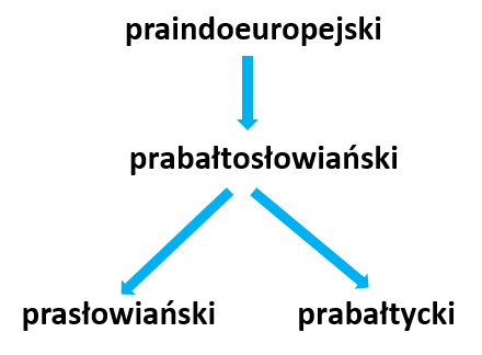 • hipoteza bardziej tradycyjna mówi, że prabałtosłowiański podzielił się na język prasłowiański (który był przodkiem wszystkich języków słowiańskich, m.in. języka polskiego) i język prabałtycki (który był przodkiem wszystkich języków bałtyckich, m.in. litewskiego, łotewskiego i wymarłego staropruskiego).